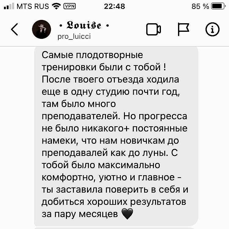 Достижения:4 года занятий балетом в хореографическом училище, занятия Pin-Up разных стилей, воздушной гимнастикой.
